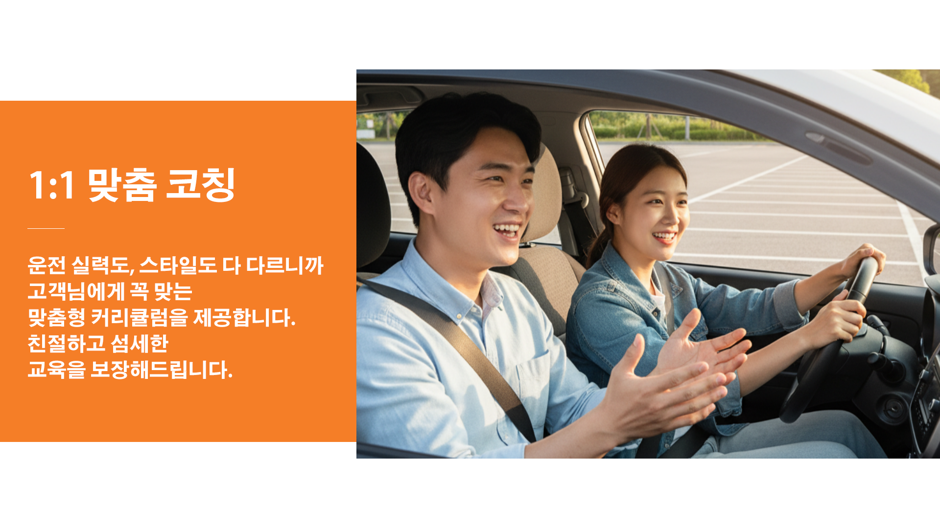 장롱면허라 다시 감을 잡고 싶은 분, 도로 주행이 아직 두려운 초보 운전자, 출퇴근·등하원처럼 “자주 가는 길”을 안전하게 익히고 싶은 분들에게 잘 맞아요. 송도는 차선이 넓고 도로가 비교적 정돈된 편이라 기초를 다지기에도 좋아요.