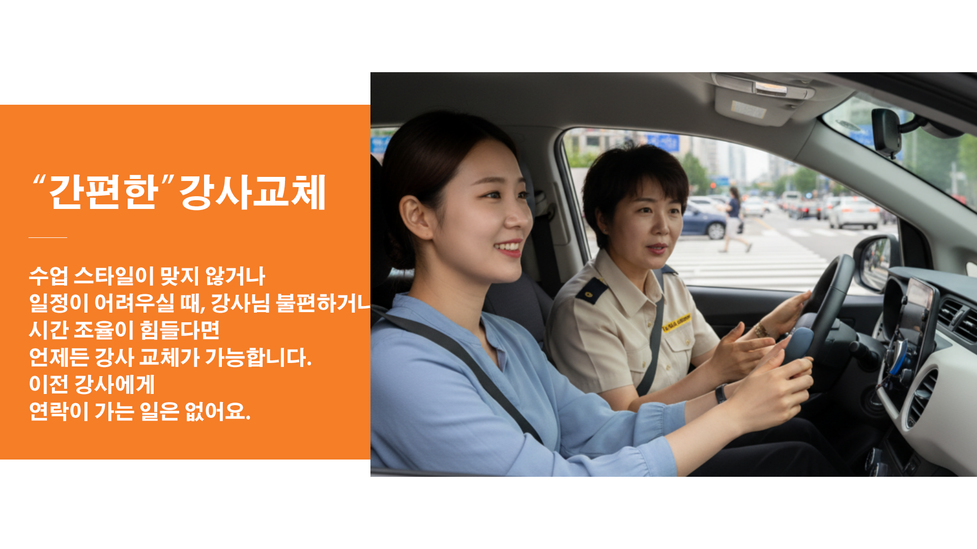 차선 변경은 방향지시등 → 미러 확인 → 어깨너머(사각지대) 확인 → 속도 유지 → 부드럽게 진입 순서가 몸에 익으면 훨씬 안정돼요. 연수에서는 한 번에 급하게 들어가기보다, 교통량이 적은 구간에서 “정확한 절차”를 반복하면서 자신감을 만드는 방식이 좋아요.